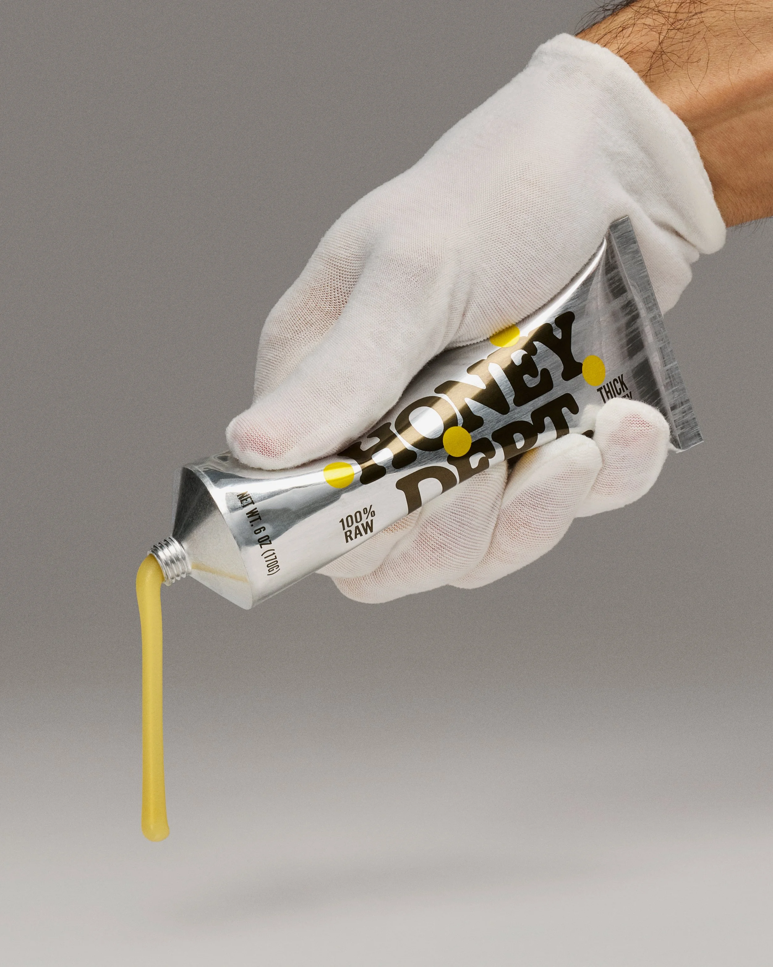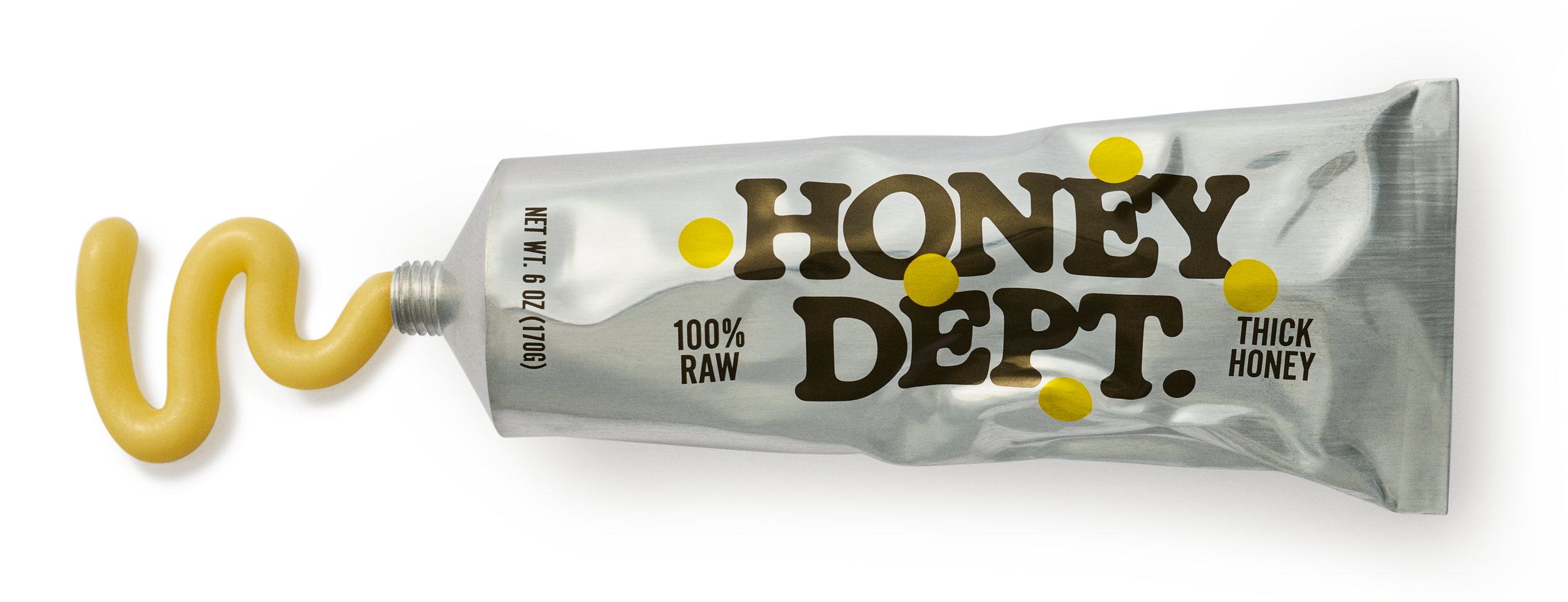 Honey Department makes honey made for daily use — thicker, smoother and squeezed from a tube. Foreign National developed the product and brand, including naming, visual identity, packaging, website and advertising. See more on Instagram. Photography: Graham Pollack.